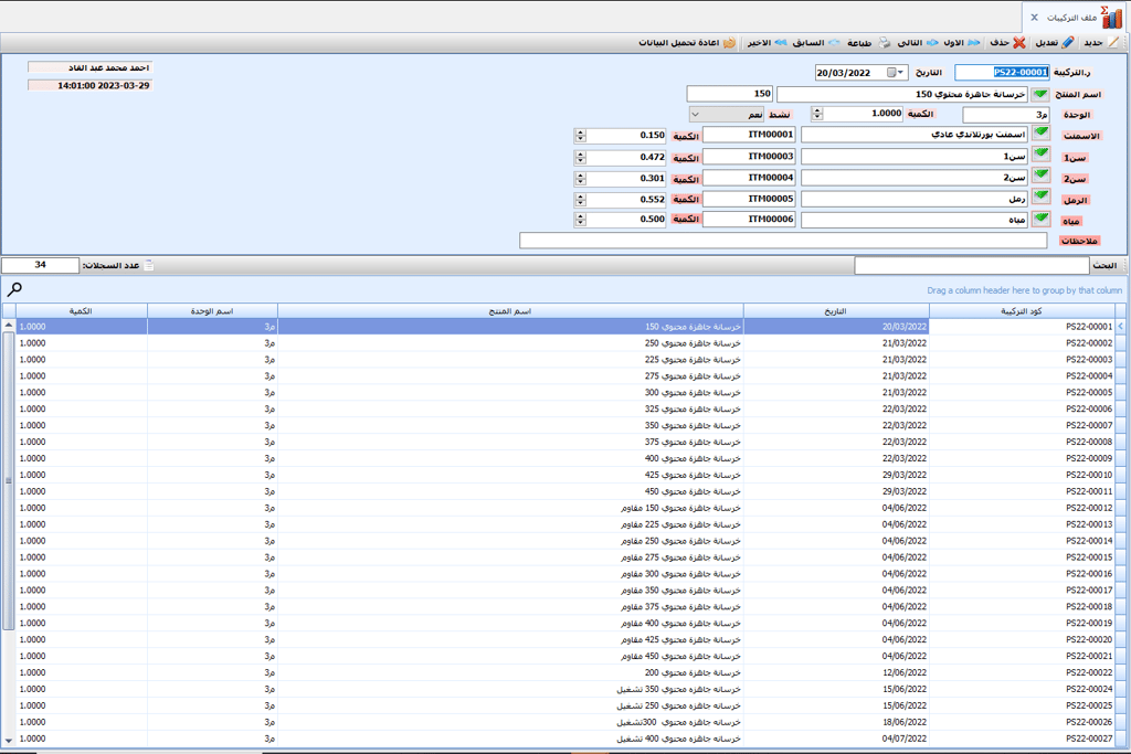 كما يسمح النظام بتسجيل بطاقة مكونات المنتج من المواد مع إمكانية التركيبات للمنتج الواحد كما يسمح النظام بإدخال خطط الإنتاج المختلفة مع قيام النظام باستخراج تقرير بالكميات المطلوبة توفيرها من المواد لتنفيذ خطة الإنتاج (خطة مشتريات) مع الآخذ في الاعتبار أرصدة المواد( الرصيد الفعلي- الرصيد المحجوز – الرصيد الحر – بضاعة بالطريق )