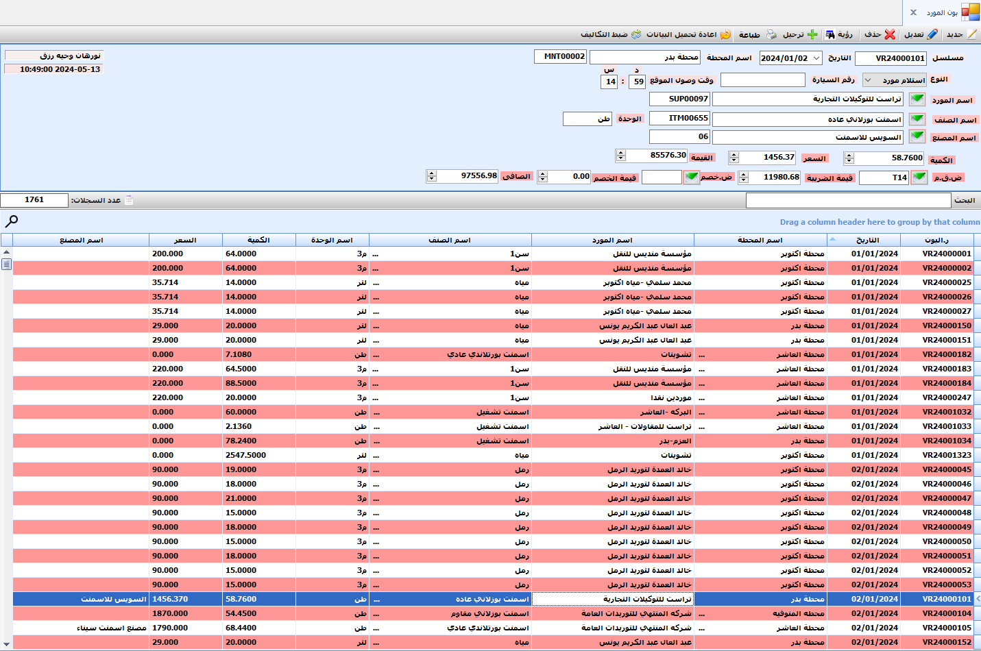 تقارير سجلات الحركات (توريد ، عروض اسعار ، اوامر توريد ، فواتير ، مردودات ، سجلات السداد).