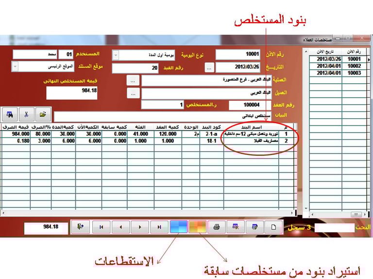 برنامج مستخلصات العملاء من SAWA123 لشركات المقاولات