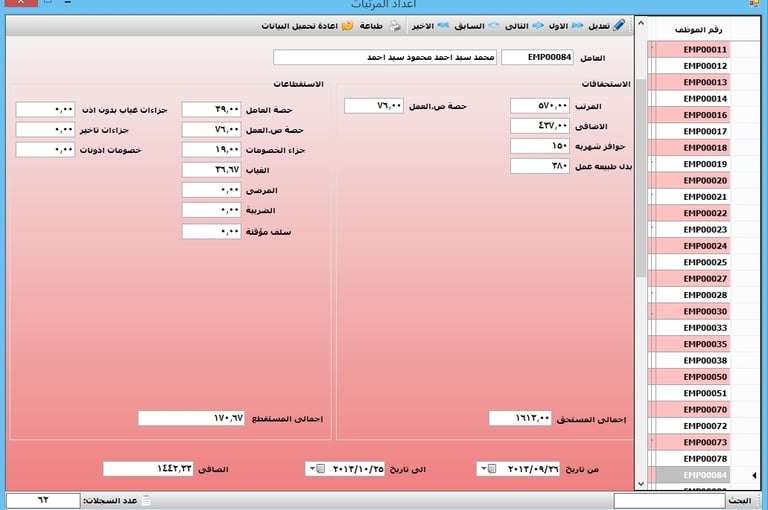 تقرير بيانات الموظف