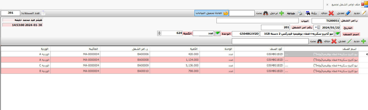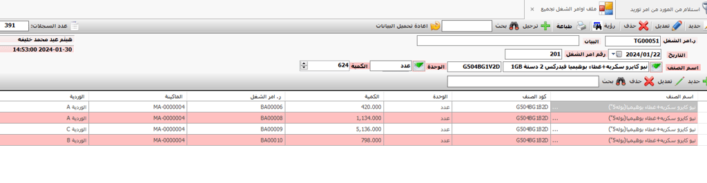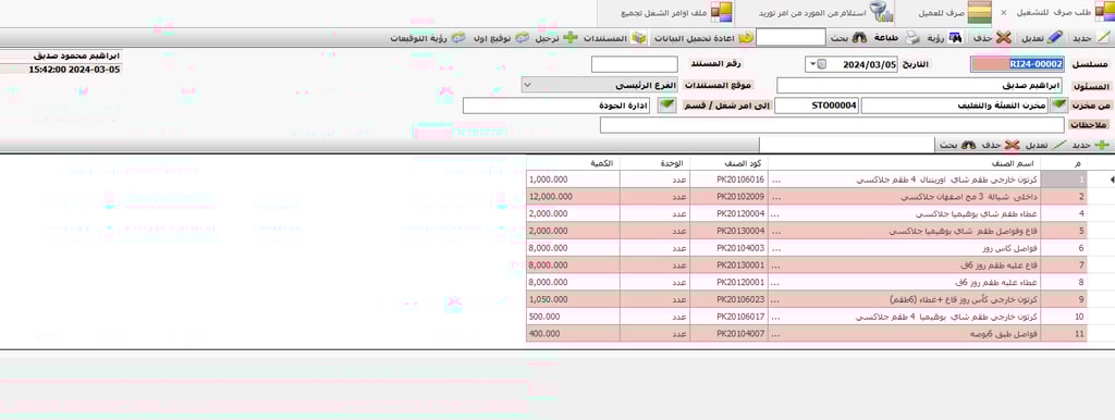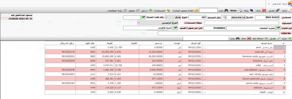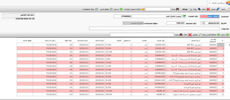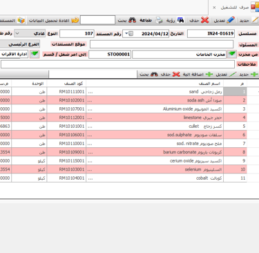 • حفظ البيانات الاساسية للنظام و المستلزمات المستخدمة فى الانتاج و مواصفاتها و الحدود القصوى و الدنيا و حد الطلب و الكمية المفروض طلبها فى طلب الشراء لكل صنف .